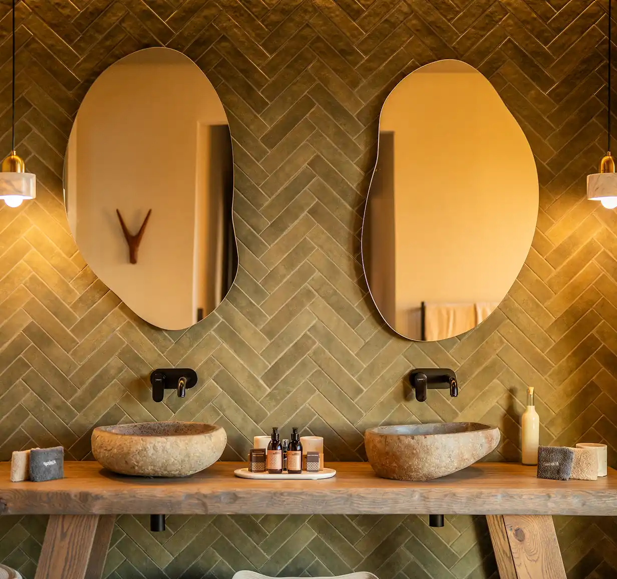 timbers and accents of warm metals create an atmosphere of calm and
